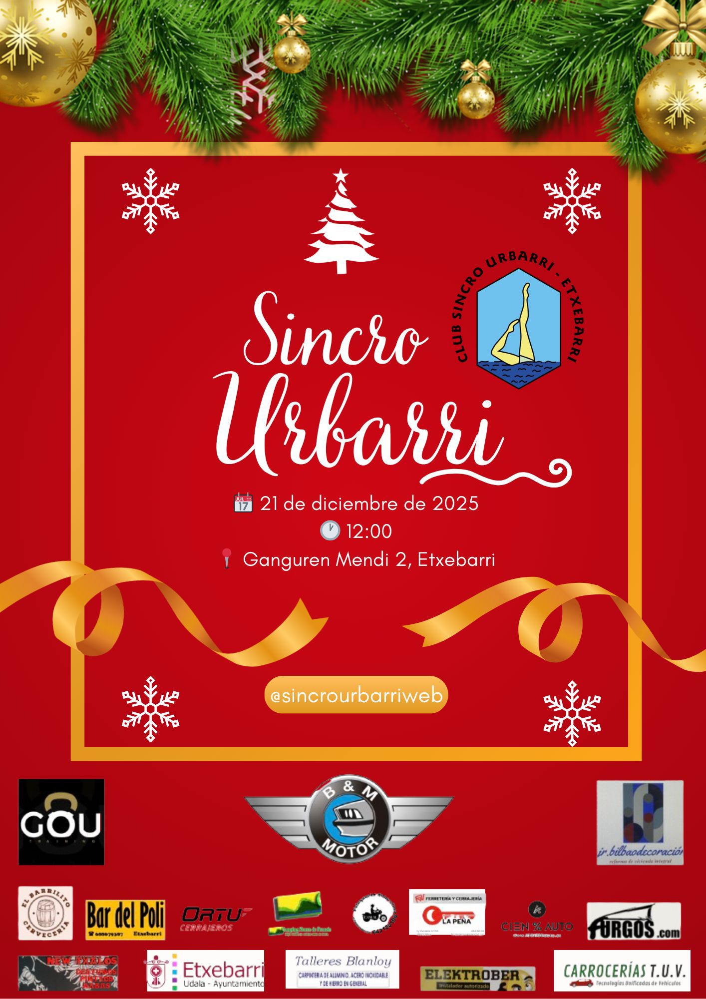 Klubetik familia guztiak eta igeriketa artistikoaren zaleak gonbidatzen ditugu gurekin batera eguerdi berezi hau partekatzera eta Gabonetako ospakizunaz igerilekuan gozatzera.